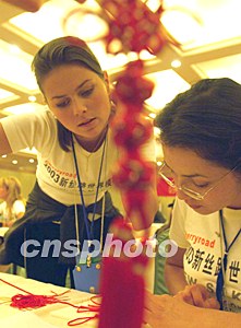 組圖:世界模特大賽佳麗學(xué)做中國(guó)結(jié)