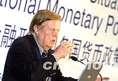 被譽(yù)為“歐元之父”的諾貝爾獎(jiǎng)獲得者、哥倫比亞大學(xué)教授蒙代爾十一月三日在博鰲亞洲論壇上發(fā)表演講,談國(guó)際金融形勢(shì)和國(guó)家貨幣政策。中新社記者:毛建軍