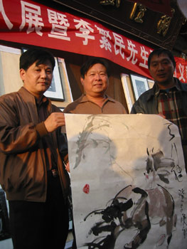 “太陽(yáng)星城愛心之旅”的成員——著名畫家李繁民先生現(xiàn)場(chǎng)揮毫作畫,頃刻之間,一匹匹栩栩如生的駿馬就躍然紙上。在旁觀者中,有不少人是書畫愛好者,他們就著李老師的駿馬圖點(diǎn)評(píng),贊嘆聲不絕于耳。杭州的陳先生也是畫馬的愛好者,他說(shuō):“李老師的畫已經(jīng)跳出了傳統(tǒng)畫馬的局限,有自己的創(chuàng)新之處。”