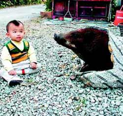 據(jù)臺(tái)灣聯(lián)合報(bào)報(bào)道,萬興村的萬墩巷成了”山豬巷”,居民閑暇不是聊山豬就是溜山豬,張勝雄家名叫”小豬”的山豬頗有個(gè)性,5個(gè)月大,不論睡覺或玩耍都要蓋被子。張?zhí)f,小豬的習(xí)性很奇特,親戚朋友聽到了還跑來一觀究竟,看到山豬躺在彈簧床上蒙著棉被睡大頭覺,不禁笑說”真有人性”。