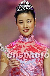 “2003中華小姐環(huán)球大賽”總決賽11月8日晚在香港會(huì)展中心舉行,經(jīng)角逐來(lái)自上海的參賽選手江欣榮獲中華小姐大賽冠軍。中新社記者:錢興強(qiáng)