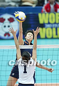 2003年11月9日,中國女排在日本富山進(jìn)行第九屆女排世界杯賽比賽中,以3比0擊敗阿根廷隊(duì),取得了七連勝。圖為趙蕊蕊快球進(jìn)攻。中體在線/供圖
