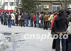今天是研究生報名的第一天,在北京大學(xué)、師范大學(xué)等高校的研究生報名點(diǎn)都排起了長隊(duì),最長的隊(duì)伍有數(shù)百米。過去報名需要審查登記表,今天只是照相和領(lǐng)取準(zhǔn)考證。與往年不同的是,在職人員報考時,工作人員不在要求他們出示單位證明,報名登記表上也無需單位公章。