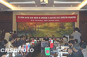 據(jù)悉,今年八月,亞太空間合作組織在泰國曼谷舉行章程起草組第一次會議,與會代表一致同意將亞太空間合作組織總部設(shè)在中國。十日舉行的第二次會議將結(jié)束亞太空間合作組織章程所有條款的討論,在獲得有關(guān)國家政府批準(zhǔn)后,亞太空間合作組織即可正式成立。