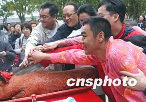 影片公司高層人士向華強(qiáng)在拜神儀式上。 中新社記者:錢(qián)興強(qiáng)