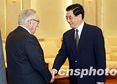 胡錦濤今天在人民大會堂會見了美國前國務(wù)卿基辛格博士,賓主進行了友好交談。胡錦濤對基辛格長期致力于中美友好、為中美關(guān)系正;鞒龅臍v史性貢獻表示贊賞。