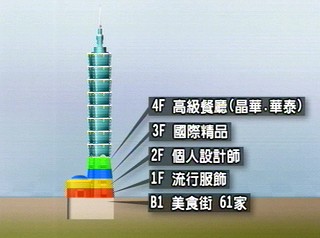 目前世界排名十大高樓,臺灣以臺北101購物中心,樓高508米,擁有101層樓登上榜首。