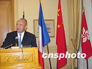 香港特區(qū)行政長(zhǎng)官董建華十二日至十三日訪問法國(guó)。在巴黎期間,他會(huì)晤了法國(guó)總統(tǒng)希拉克、法國(guó)財(cái)長(zhǎng)及法國(guó)工商界人士,董建華介紹了香港正在復(fù)蘇的經(jīng)濟(jì)形勢(shì)。法國(guó)各界對(duì)與香港開展合作充滿興趣。董建華的法國(guó)之旅取得圓滿成功。圖為董建華于十三日上午在巴黎向新聞界介紹訪法成果。中新社記者:蔚中