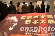 十一月十五日,作為向中國文學(xué)巨匠巴金先生百年華誕獻(xiàn)禮的《巴金百年喜慶藝術(shù)大展》在北京中國現(xiàn)代文學(xué)館隆重開幕。大展集中了五十位藝術(shù)大師精心創(chuàng)作的描繪巴金先生和他的作品及思想的作品,是近年來少有的藝術(shù)大聯(lián)展。中新社記者:史利