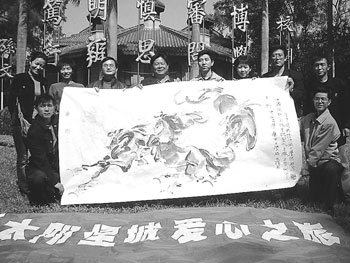 當(dāng)采訪團離去時,采訪團的畫家李繁民先生給他送了一幅駿馬圖,以示紀(jì)念。在這里,我們祝愿他能夠一生平安和幸福。