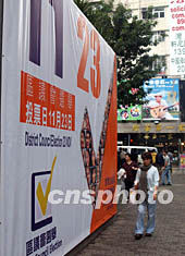 香港特別行政區(qū)區(qū)議會選舉將于十一月二十三日進行投票,在香港街頭區(qū)議會選舉投票日標語引人注目。中新社記者:錢興強