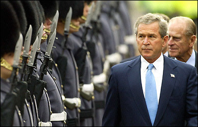 美國總統布什18日晚抵達倫敦,開始對英國進行國事訪問。他將是繼1982年里根訪英以來,第一位正式應伊麗莎白女王之邀到英國進行國事訪問的美國總統。不過,與里根訪英相比,布什這次有了很大的不同。