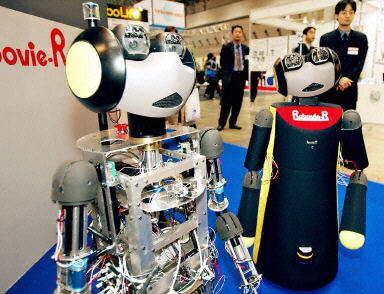 11月20日,在日本東京舉行的“2003國(guó)際機(jī)器人展”上,形色各異的機(jī)器人紛紛亮相。