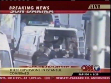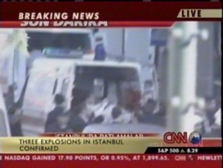 北京時間11月20日下午,位于土耳其伊斯坦布爾北部的土耳其匯豐銀行總部附近發(fā)生兩次爆炸,部分銀行建筑被摧毀。此后英國駐伊斯坦布爾領事館以及一個居民區(qū)和一座清真寺也遭到襲擊。圖為爆炸中受傷人員被抬上救護車。(春風)