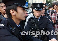 二零零三年香港特別行政區(qū)區(qū)議會(huì)選舉投票日十一月二十三日在香港十八個(gè)區(qū)同時(shí)展開(kāi),為保障選舉投票安全,警察在投票站加強(qiáng)治安管理。 中新社記者:錢興強(qiáng)