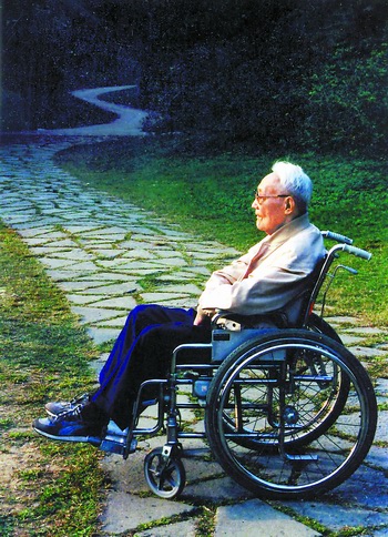 但也正是由于在完成《隨想錄》一百五十多篇寫作后,巴金仍不曾放下他那堅(jiān)強(qiáng)的筆桿,他在九十歲(1994)以后身體確實(shí)越來越顯得衰老了,不僅頭發(fā)全白,他那老年性慢性支氣管炎更加嚴(yán)重,“文革”結(jié)束后不久就患上的帕金森氏病更使他行動(dòng)受到影響,連筆也愈來愈不聽使喚;同時(shí)由于身體嚴(yán)重缺鈣,引起胸脊椎骨折和體位性血壓波動(dòng)。他在八十年代中期還可以站在特制的圈車?yán)镒邉?dòng),而現(xiàn)在只好坐在輪椅上過日子;當(dāng)然,每天幾乎有一半時(shí)間還是躺在床上。
