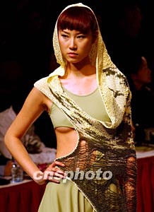 圖:中國國際時裝周上提醒預(yù)防SARS的時裝