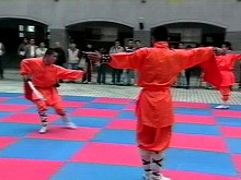 據(jù)臺灣東森新聞報報道,少林弟子們?yōu)閷殟u師生展示了多種獨門絕活,如鎮(zhèn)山刀、鎮(zhèn)山棍、功夫拳、二指禪都搬上臺面,另外十八般武藝中的追風刀、游龍劍、三節(jié)棍以及硬里子功夫全身斷棍、頭開鋼板也再度現(xiàn)身,壓軸節(jié)目則是羅漢撞金鐘。