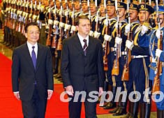 中新社北京十二月三日電(記者齊彬)中國(guó)國(guó)務(wù)院總理溫家寶三日在人民大會(huì)堂與來訪的斯洛文尼亞總理羅普舉行會(huì)談。