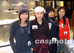 香港流行音樂組合Cookies為品牌眼鏡宣傳。一個品牌眼鏡5日展示2004年春夏眼鏡系列,香港流行音樂組合Cookies 出席記者會為其宣傳。中新社記者:譚達(dá)明  香港藝人楊婉儀5日在一品牌眼鏡記者會時,戴上新款眼鏡。中新社記者:譚達(dá)明