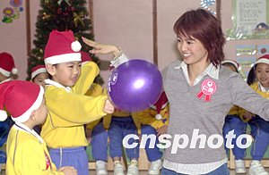 歌星梁詠琪12月8日在香港出席仁濟醫(yī)院郭子梁幼兒中心探訪活動,“仁濟慈善大使”梁詠琪與該中心小朋友一起唱游,并帶備圣誕禮物派發(fā)。作者:鄧慶樂