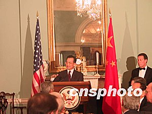 會(huì)見后,溫家寶出席了鮑威爾舉行的歡迎宴會(huì)。李肇星等中方陪同人員和美國(guó)財(cái)政部長(zhǎng)斯諾、總統(tǒng)國(guó)家安全事務(wù)助理賴斯等出席。完