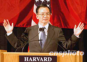 中新網(wǎng)12月11日電 中國(guó)總理溫家寶當(dāng)?shù)貢r(shí)間十日在位于美國(guó)東部大城市波士頓的世界知名高等學(xué)府哈佛大學(xué)演講時(shí),鼓勵(lì)中美兩國(guó)青年,面對(duì)新世紀(jì)兩國(guó)關(guān)系的廣闊前景,能夠更加緊密地?cái)y起手來(lái)。