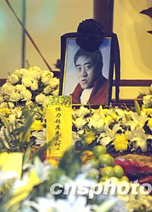 十二月十一日,柯受良家屬在上海龍華寺三圣殿為柯受良舉行法事超度儀式,圈中好友曾志偉、韓紅等陸續(xù)來(lái)到現(xiàn)場(chǎng)祭奠。中新社記者:湯彥俊