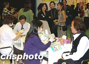 “媽咪寶寶暨家庭健康博覽2003”十二月十二日在香港會(huì)展中心開(kāi)幕,主辦機(jī)構(gòu)提供的十多項(xiàng)免費(fèi)健康測(cè)試及現(xiàn)場(chǎng)健康咨詢服務(wù)受到與會(huì)者青睞,并成為博覽會(huì)特色之一。作者:潘索菲