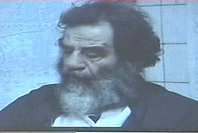 12月14日,美國負(fù)責(zé)伊拉克戰(zhàn)后重建事務(wù)的最高文職行政長官布雷默在記者招待會上正式宣布,伊拉克前總統(tǒng)薩達(dá)姆已被捕。薩達(dá)姆被捕前坐在提克里特一處秘密藏身洞中,被捉時他反應(yīng)平靜,滿臉胡須,沒有反抗。薩達(dá)姆隨后接受了體檢,并被剪掉了濃密的胡須。