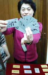中新網(wǎng)12月16日電(記者甄雪原)在一代偉人毛澤東誕辰一百一十周年之際,北京王府井古人類文化遺址博物館舉辦了一個(gè)以個(gè)人收藏品為主的“歷史巨人毛澤東”展。兩副由毛澤東不同時(shí)期簽名而構(gòu)成牌面的金屬撲克牌也現(xiàn)身此展覽上,撲克形式新穎,頗為引人關(guān)注。