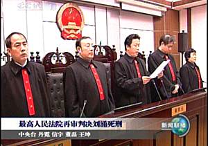 中新網(wǎng)12月22日電 最高人民法院今天(22日)上午在遼寧省錦州市中級人民法院對劉涌組織、領(lǐng)導黑社會性質(zhì)組織一案經(jīng)再審后作出判決,判處劉涌死刑。宣判后,遼寧省鐵嶺市中級人民法院遵照最高人民法院下達的執(zhí)行死刑命令,當日對劉涌執(zhí)行了死刑。