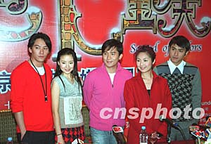 根據(jù)幾米同名漫畫改編的賀歲影片《地下鐵》二十二日在北京舉行首映式,主要演員張震、董潔、梁朝偉、楊千嬅、范植偉(從左到右)出席。作者:高遠
