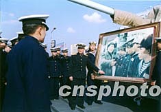 毛澤東于1953年2月19日首次視察解放軍海軍部隊(duì),在武漢登上“洛陽(yáng)”艦和該艦官兵一起航行,并揮毫題詞:“為了反對(duì)帝國(guó)主義的侵略,我們一定要建立強(qiáng)大的海軍”。“洛陽(yáng)”艦官兵12月20日在毛主席與“洛陽(yáng)”艦官兵交談的巨幅照片前重溫領(lǐng)袖題詞,紀(jì)念毛澤東誕辰110周年。作者:毛昭勝