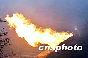 圖:重慶開(kāi)縣天然氣井噴事故24日晚井噴現(xiàn)場(chǎng)