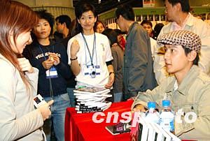 香港藝員吳彥祖十二月二十六日在香港會(huì)展中心舉行的“書節(jié)2003”上,為電影原著小說(shuō)《妖夜回廊》簽名。中新社記者:錢興強(qiáng)