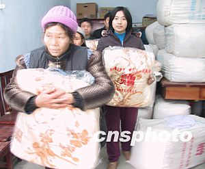 多圖:重慶井噴事故轉(zhuǎn)移民眾領(lǐng)取救災物資