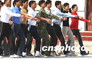 靠近中國的越南一家賓館員工,二十七日接受軍事化訓(xùn)練以提高行業(yè)規(guī)范化服務(wù),為新年旅游高峰做準(zhǔn)備。中新社記者:宋吉河