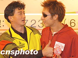 歌星許志安12月29日在香港出席大型慈善籌款節(jié)目《慈善星輝仁濟(jì)夜》記者會(huì),許志安力贊吳剛師傅功夫了得,吳剛師傅則贊許志安唱歌好聽(tīng),互相欣賞。作者:鄧慶樂(lè)