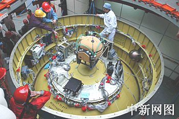 圖:"長征二號丙"改進型運載火箭二級、上面級對接平臺安裝
