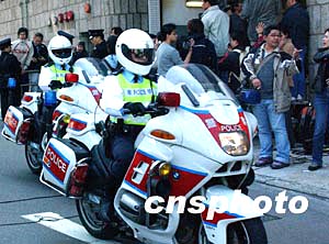 香港藝人梅艷芳因病于十二月三十日凌晨二時(shí)五十分在香港病逝,在香港養(yǎng)和醫(yī)院前大批警察維持秩序。中新社記者:錢興強(qiáng)
