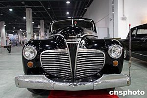 2004浙江國際汽車展1月1日在杭州和平會(huì)展中心開幕,一輛蔣介石三十年代用過的轎車——1934年中國第一座鐵路公路大橋建成通車典禮上第一輛通過大橋的轎車亮相展廳,為眾多觀眾所關(guān)注。作者:吳敏