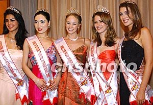 日前,在馬來西亞首都吉隆坡舉行的第八屆國際旅游小姐選美總決賽上共評出五項(xiàng)冠軍,大賽組委會主席向記者闡明,國際旅游小姐選美賽不同其它選美賽事,組委會現(xiàn)持有五項(xiàng)馬來西亞旅游部授權(quán)的大賽執(zhí)照,是次大賽由評判團(tuán)評出的有五項(xiàng)冠軍桂冠,南非的選手ANGELA BECK獲國際旅游小姐冠軍、希臘小姐獲國際旅游年度皇后冠軍、中國選手邢會原獲世界洲際小姐冠軍、阿根廷選手獲夢幻小姐冠軍、捷克選手獲國際名城小姐冠軍。而且經(jīng)授權(quán),國際旅游年度皇后和國際名城小姐兩項(xiàng)賽事,已確定2004年分別在中國舉行。曾于2001年參加該賽的中國佳麗閻巍獲得夢幻小姐冠軍,2002年中國佳麗殷子獲得國際旅游年度皇后桂冠。圖為大賽評選出的獲得不同項(xiàng)目的五名冠軍得主。中新社記者:錢興強(qiáng)