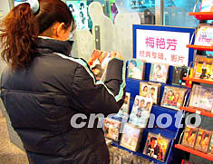 香港天后梅艷芳辭世后,有關(guān)阿梅的音樂和影視作品一直在北京熱銷,許多音像店都在顯眼位置開設(shè)梅艷芳專柜以方便人們購買。作者:張雷