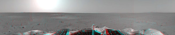 “勇氣”號(hào)發(fā)回首張火星三維全景圖像