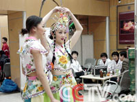 從首次彩排的情況看來(lái),今年春節(jié)晚會(huì)的節(jié)目確實(shí)是種類繁多,形式多樣。不僅有傳統(tǒng)的歌舞類節(jié)目,相聲小品也在追求出新。前段時(shí)間有報(bào)道稱,今年春節(jié)晚會(huì)的相聲類節(jié)目中,相聲演員楊少華、楊義將以化妝相聲的新形式“父子賀歲”。為了求證一番,記者特意在語(yǔ)言類節(jié)目候場(chǎng)區(qū)等候并見(jiàn)到了楊少華、楊義父子倆。對(duì)節(jié)目他們說(shuō)的不多,但他們都是都一身便裝,沒(méi)有夸張的化妝到是真的。