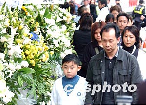 香港著名藝人梅艷芳喪禮于元月十一日設(shè)靈公祭, 眾多市民來到香港殯儀館設(shè)立的梅艷芳靈堂致祭。 中新社記者:錢興強(qiáng)