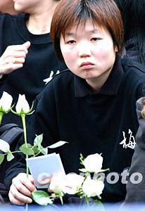 香港著名藝人梅艷芳喪禮于元月十一日設(shè)靈公祭, 歌迷手持白花致祭梅艷芳。中新社記者:錢興強(qiáng)