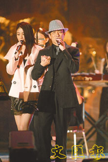 中新網(wǎng)1月12日電 劉德華和陳慧琳在勁歌頒獎(jiǎng)禮當(dāng)晚各奪得“亞太區(qū)最受歡迎男、女歌手”大獎(jiǎng),同時(shí)他倆人獲得“公益金最喜愛慈善組合大獎(jiǎng)”,更上臺(tái)合唱張國榮的《有誰共鳴》,不過二人演繹這首歌時(shí),似乎有點(diǎn)不協(xié)調(diào),表演中,陳慧琳連連卡殼,要華仔代勞唱下去。