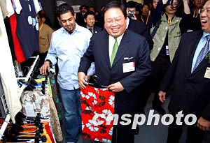 “香港時(shí)裝節(jié)秋冬系列2004及香港國際時(shí)尚薈萃2004”,1月13日至16日在會(huì)展中心舉行,圖為香港民政事務(wù)局局長何志平[中]、貿(mào)發(fā)局成衣業(yè)咨詢委員會(huì)主席鄭維志及貿(mào)發(fā)局總裁施祖祥[右]主持展覽開幕典禮。